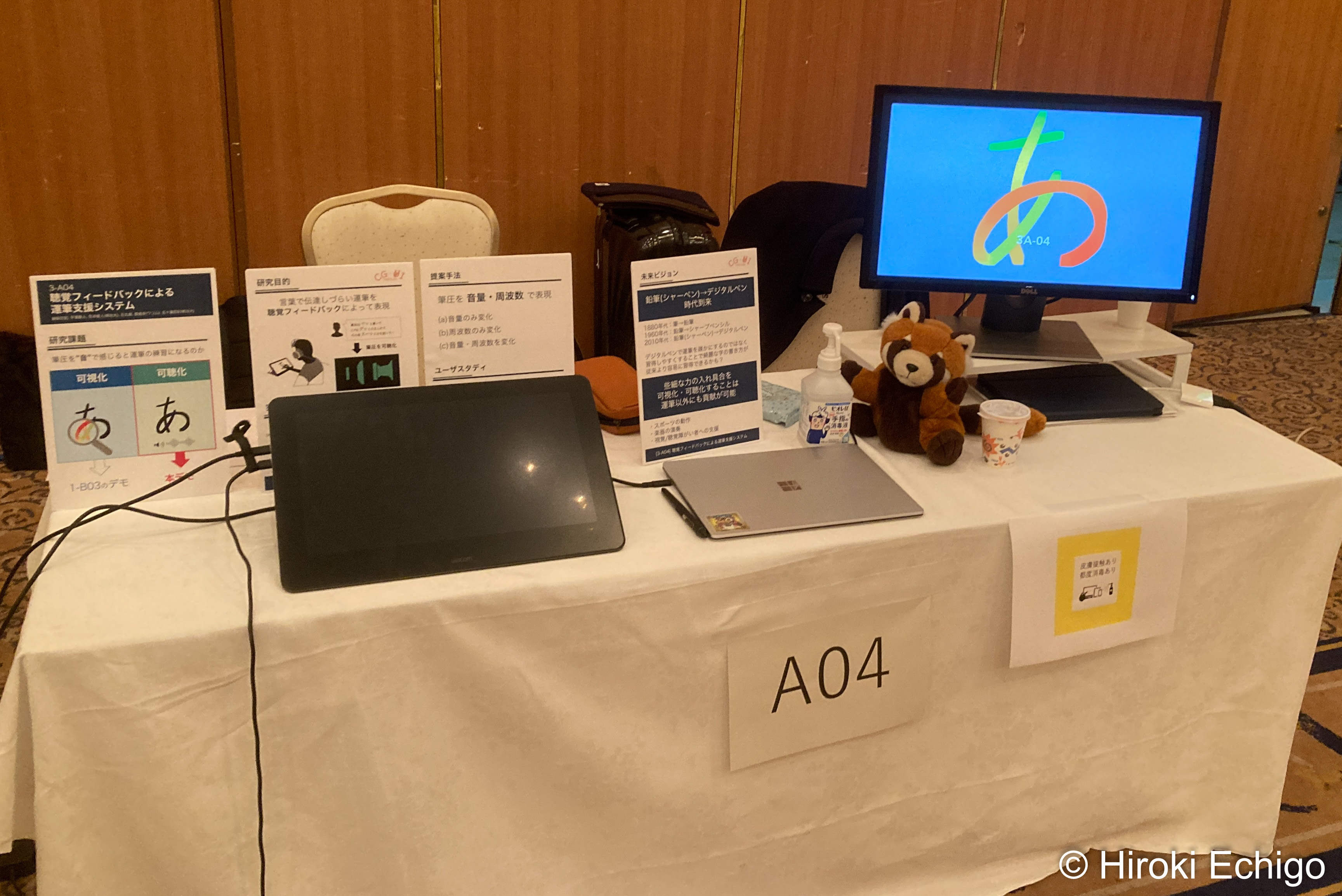 3日目は主著の「聴覚フィードバックによる運筆支援システム」のデモ発表がありました。
